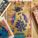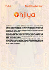 At the puzzle's heart lies the captivating figure of the Egyptian cat goddess, Bastet, elegantly adorned in a Jalabiya, the iconic loose-fitting traditional attire of Egypt. The exquisite artwork gracing this puzzle is a masterpiece by the renowned Egyptian artist, Ahmad El-Habashy.